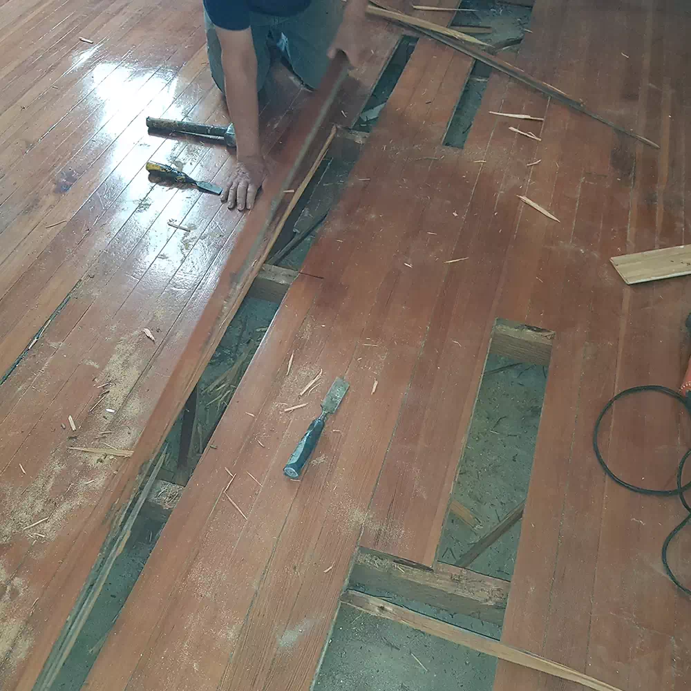 Solucionamos tablones flojos, grietas o manchas por agua. Ideal para recuperar pisos dañados sin tener que reemplazarlos.